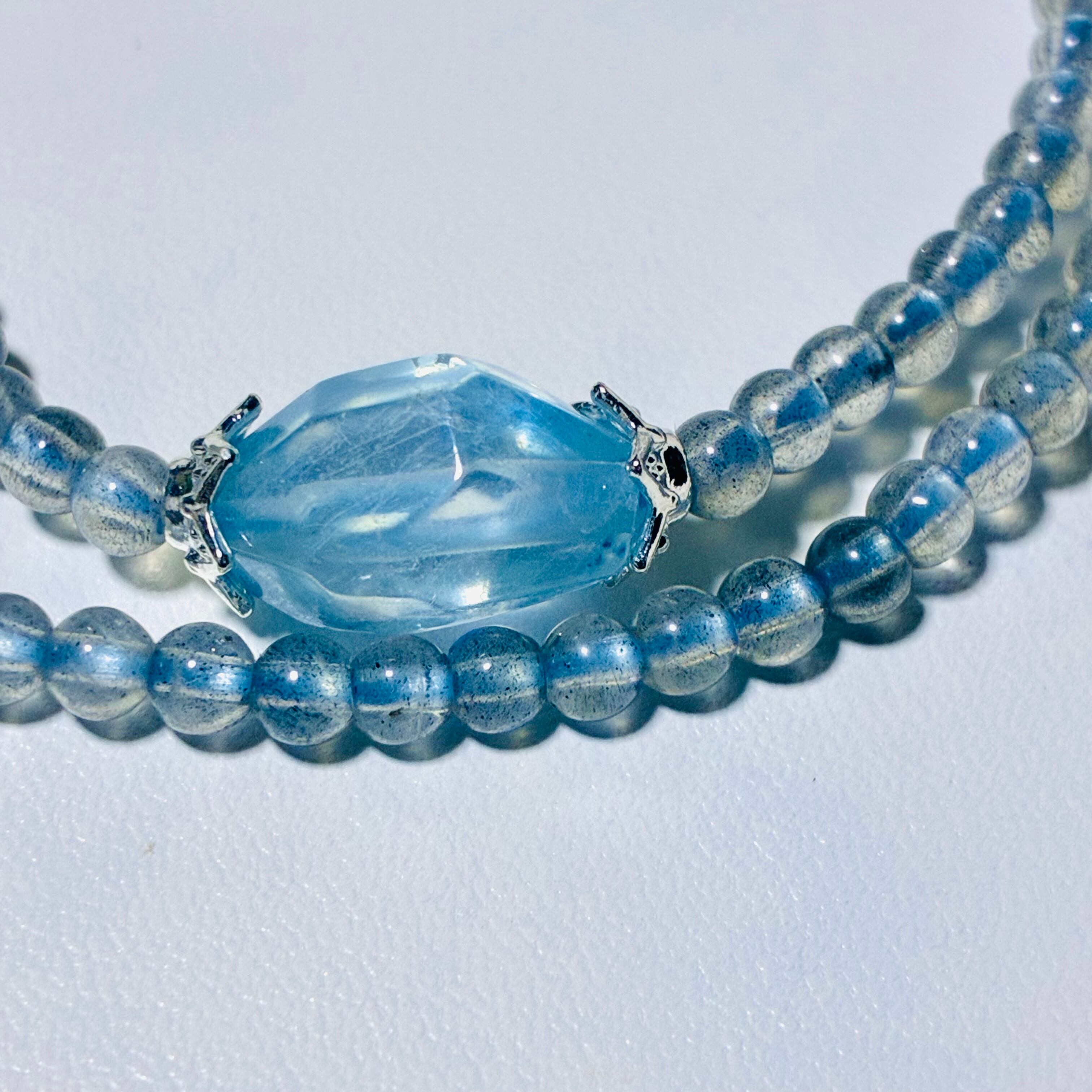 ラブラドライト×アクアマリン×水晶 2連デザブレ