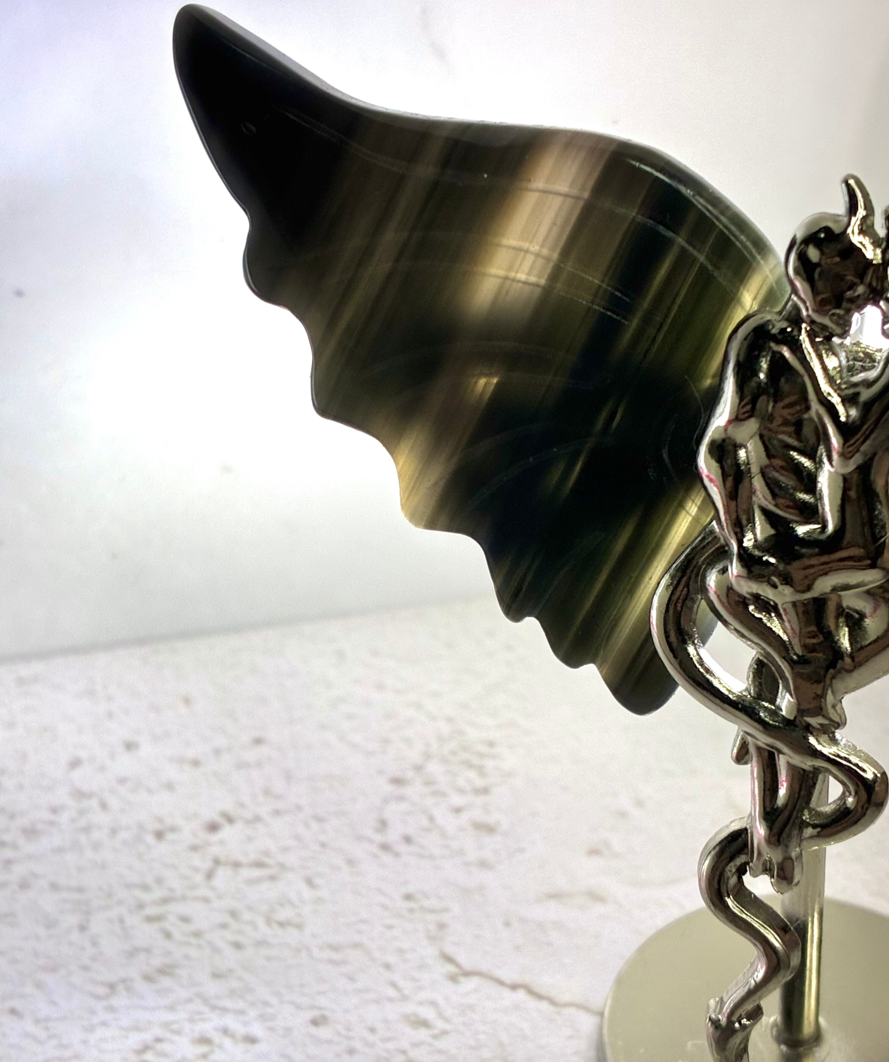 デザインこそ天使と悪魔ではありますが、黒瑪瑙には悪いエネルギーから護り、誘惑や邪気を払い運気の流れを改善させる意味と効果があるとされ、水晶の浄化効果とあわさる事により更なる運気アップのアイテムとなっております✩.*˚