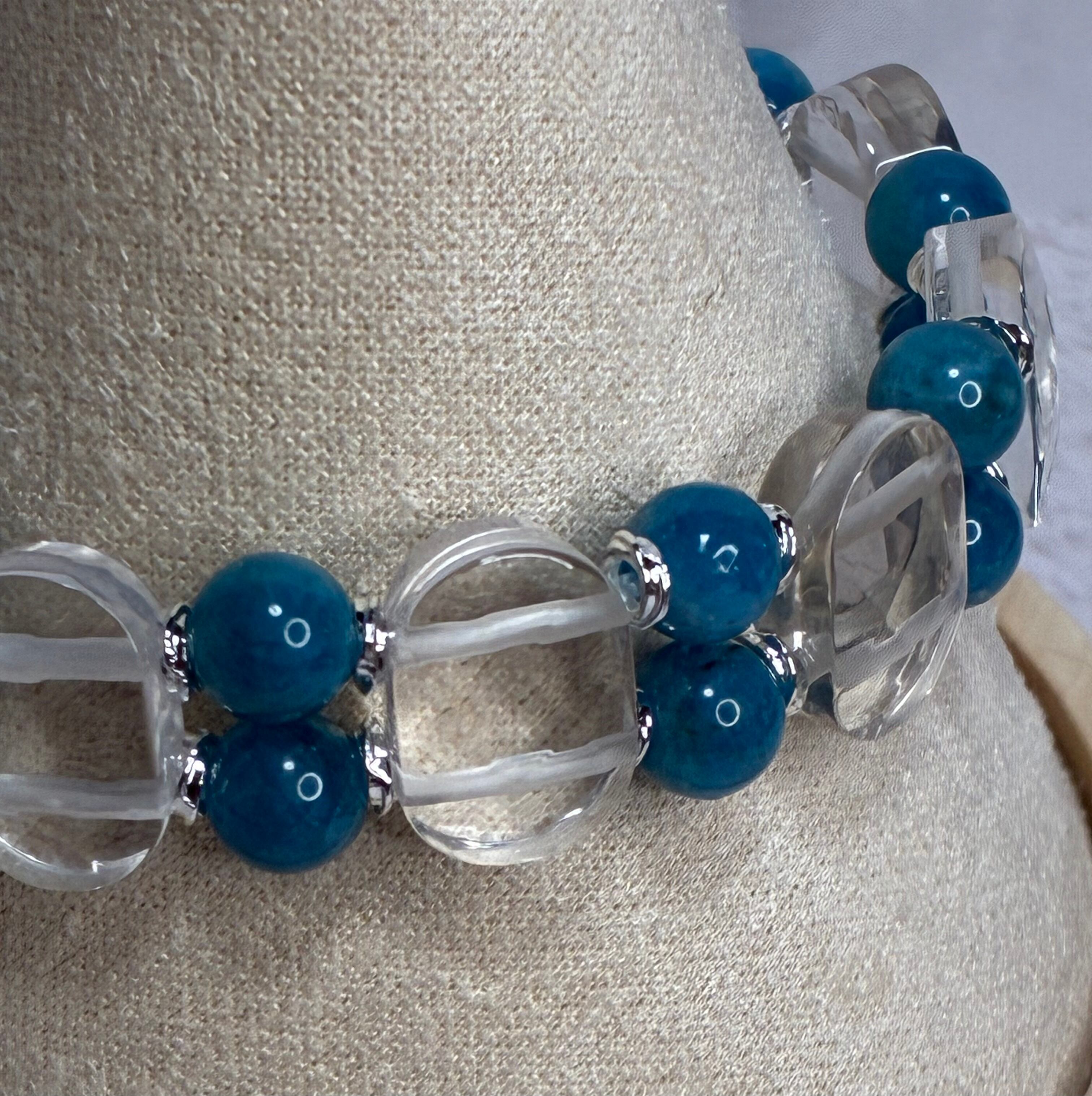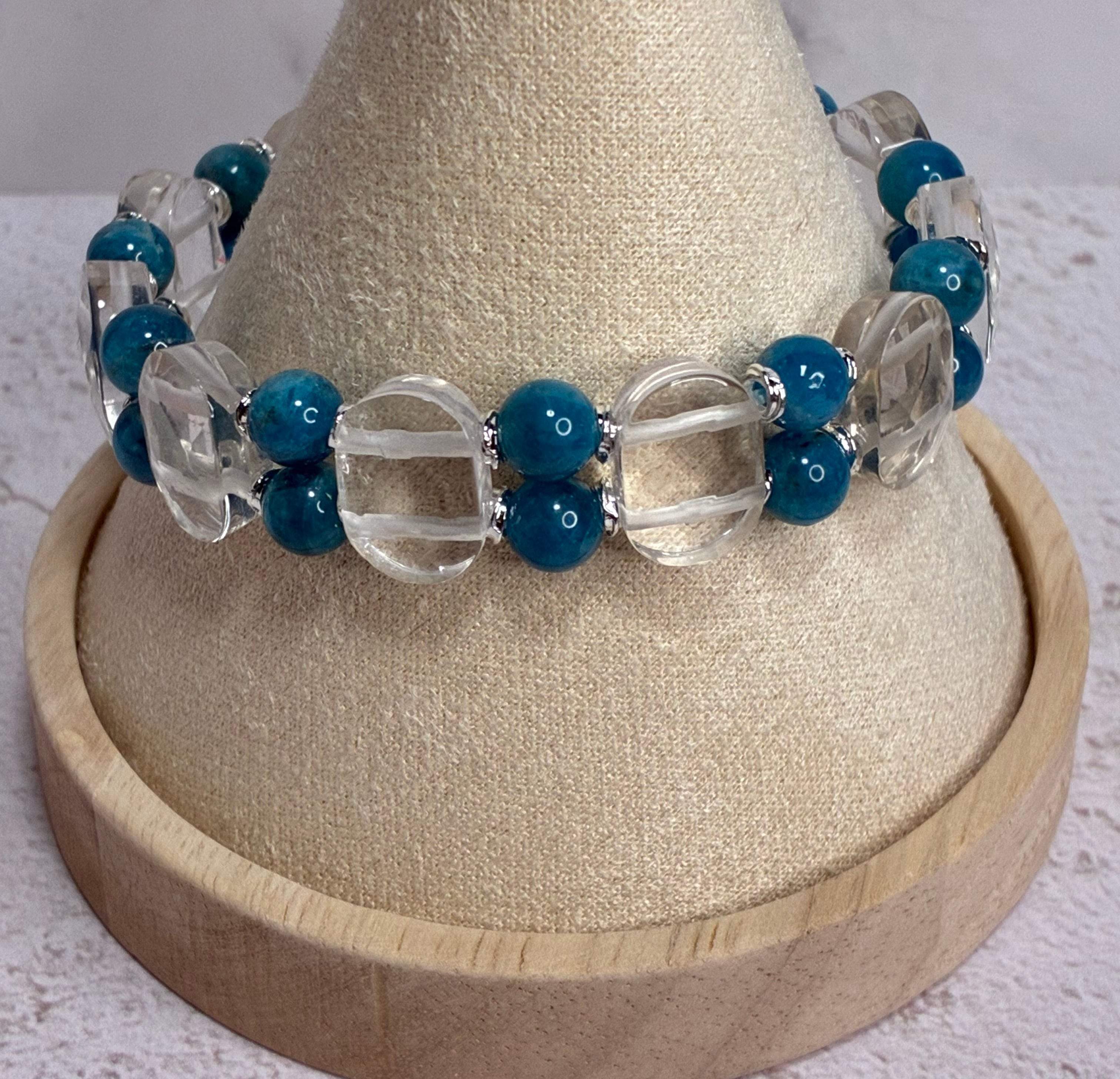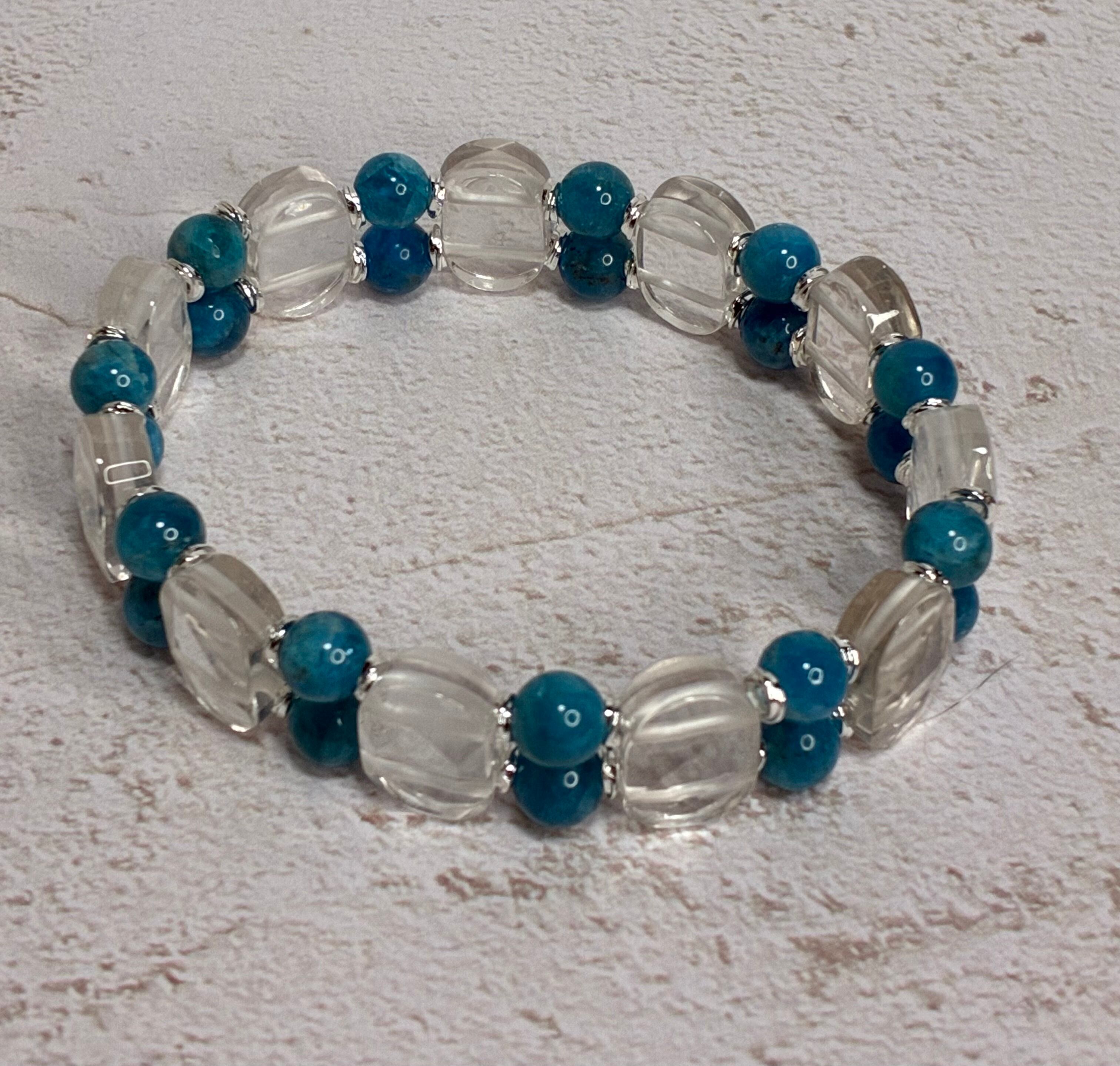鮮やかなブルーのアパタイトと、透明度抜群の水晶を使用したバングルタイプのブレス✩.*˚
