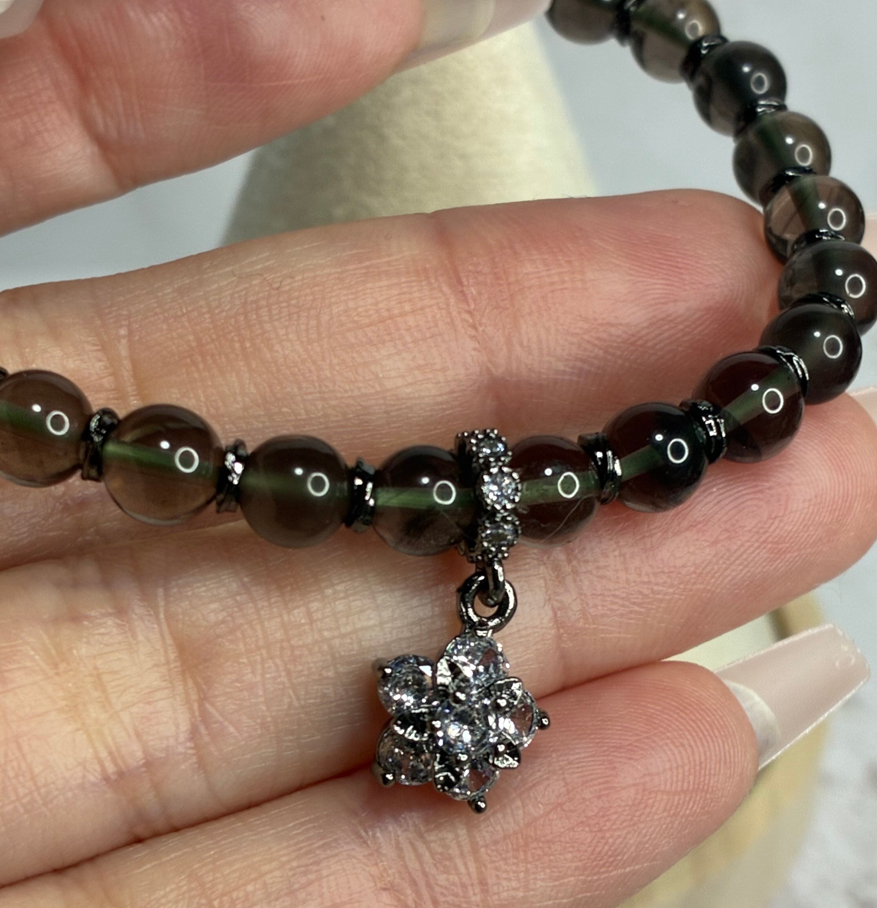 小粒のチンターマニストーンに、締め色としてブラックカラーのパーツを合わせて組んだ、細身ながら高級感のある大人ブレスに✩.*˚