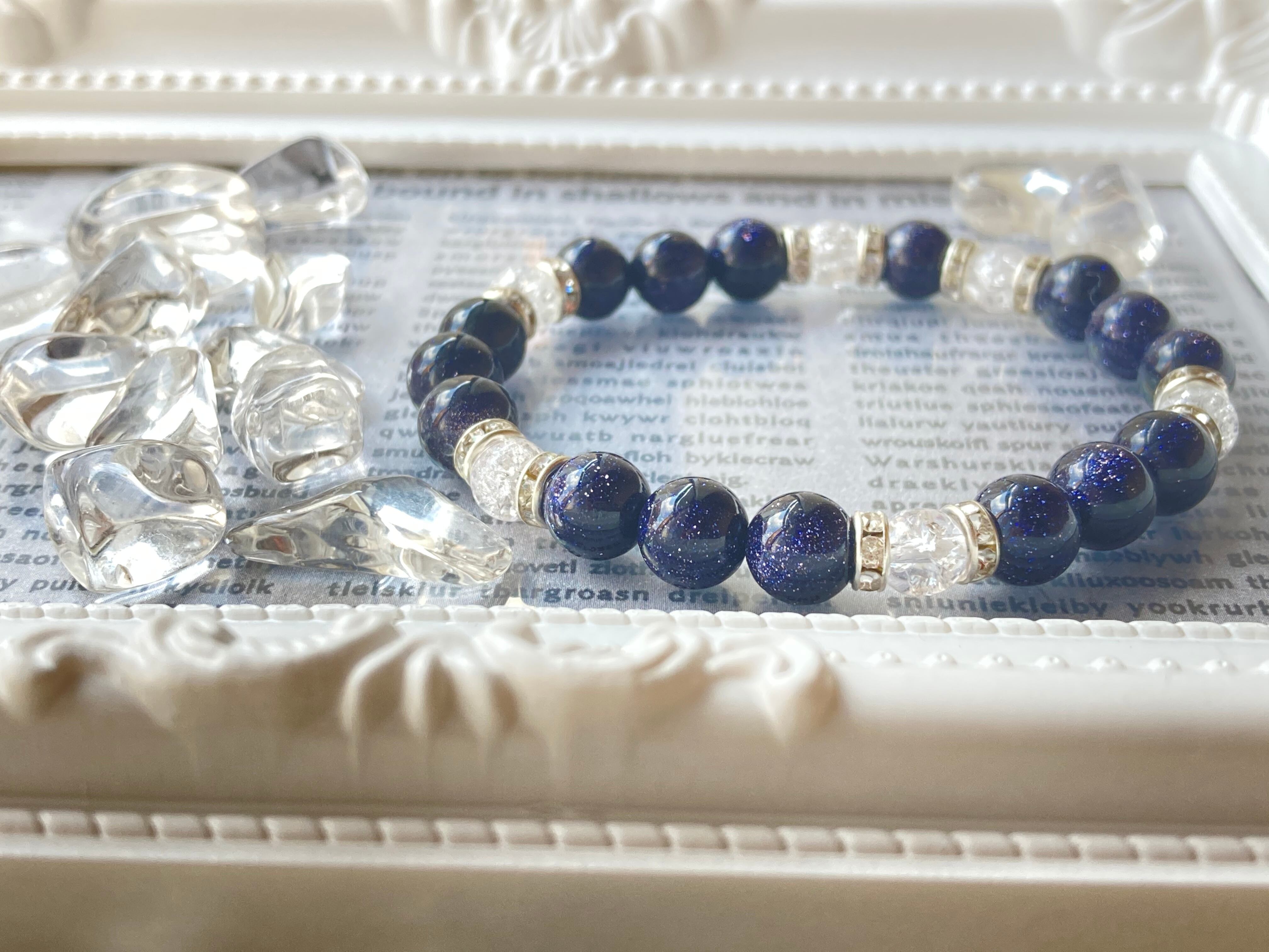 天然石ブレス-ブルーゴールドストーン×水晶-