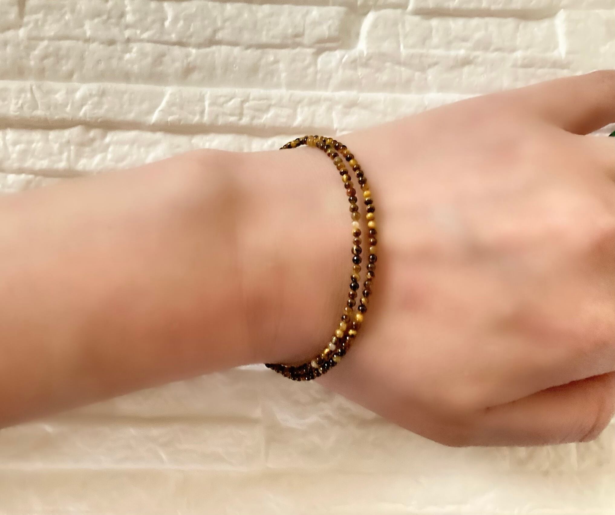 タイガーアイの2mm玉を使用した、片手でも脱着し易い二重巻きブレスです。