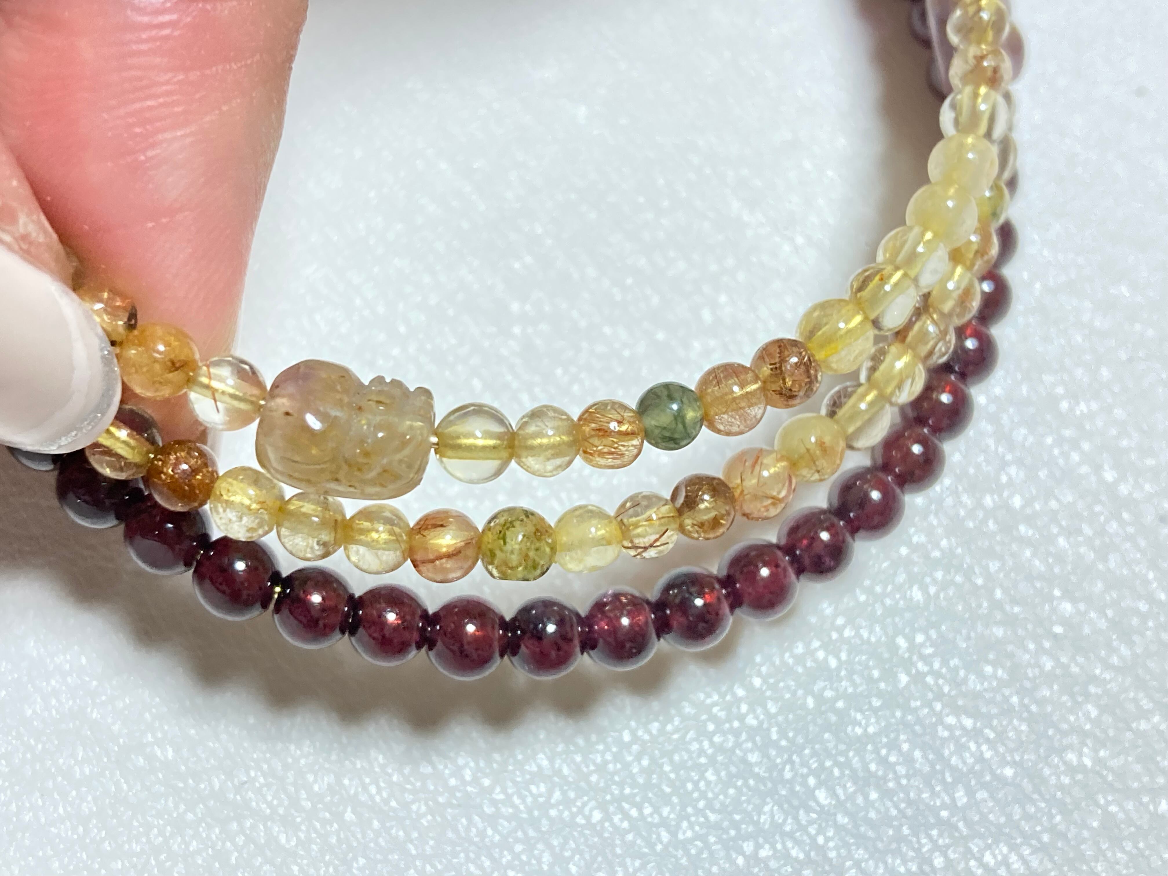 ワイヤー3連ブレス~ミックスルチル×貔貅×ガーネット