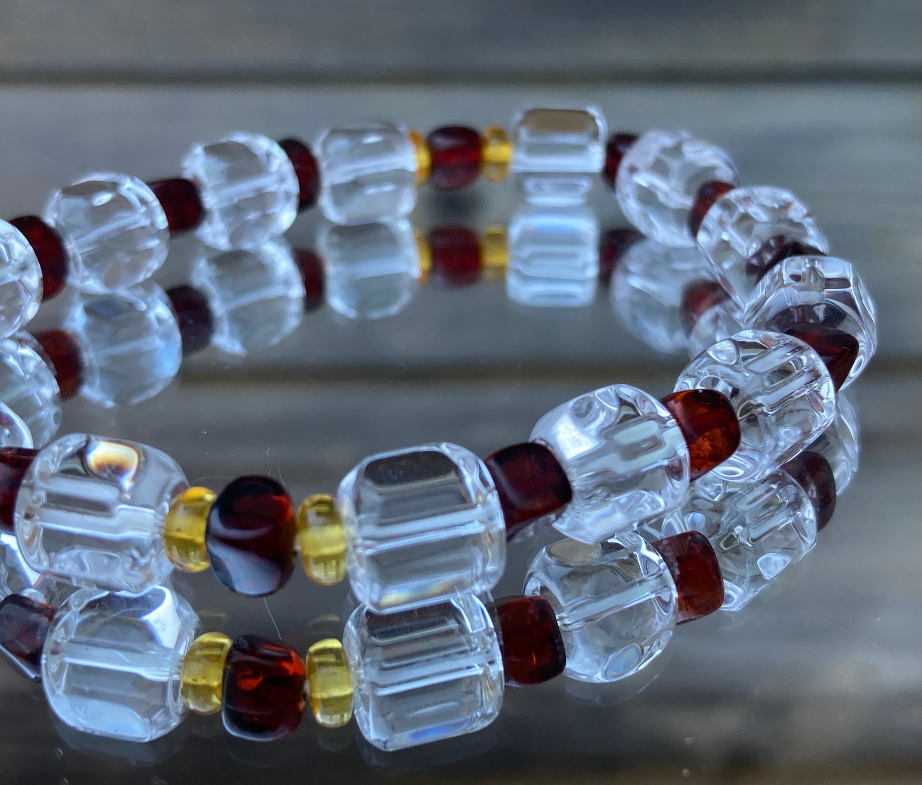 高品質キューブ水晶×アンバー ブレス